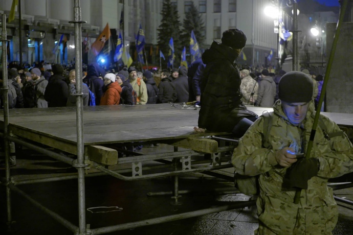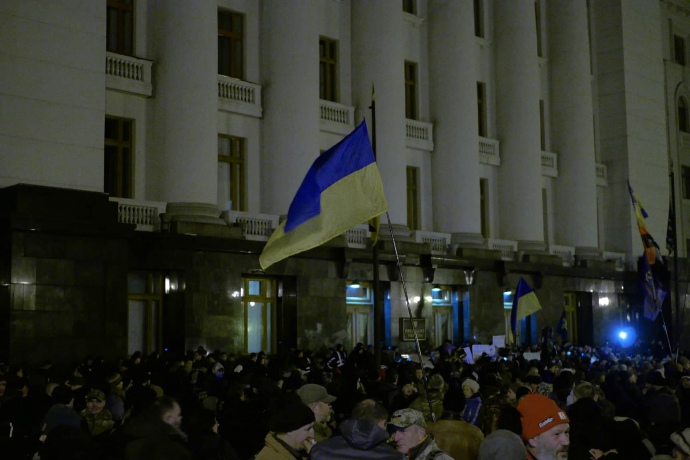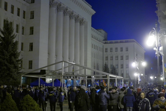 К Офису президента на Банковой стягиваются люди. Активисты установили несколько палаток и намерены остаться на ночь.