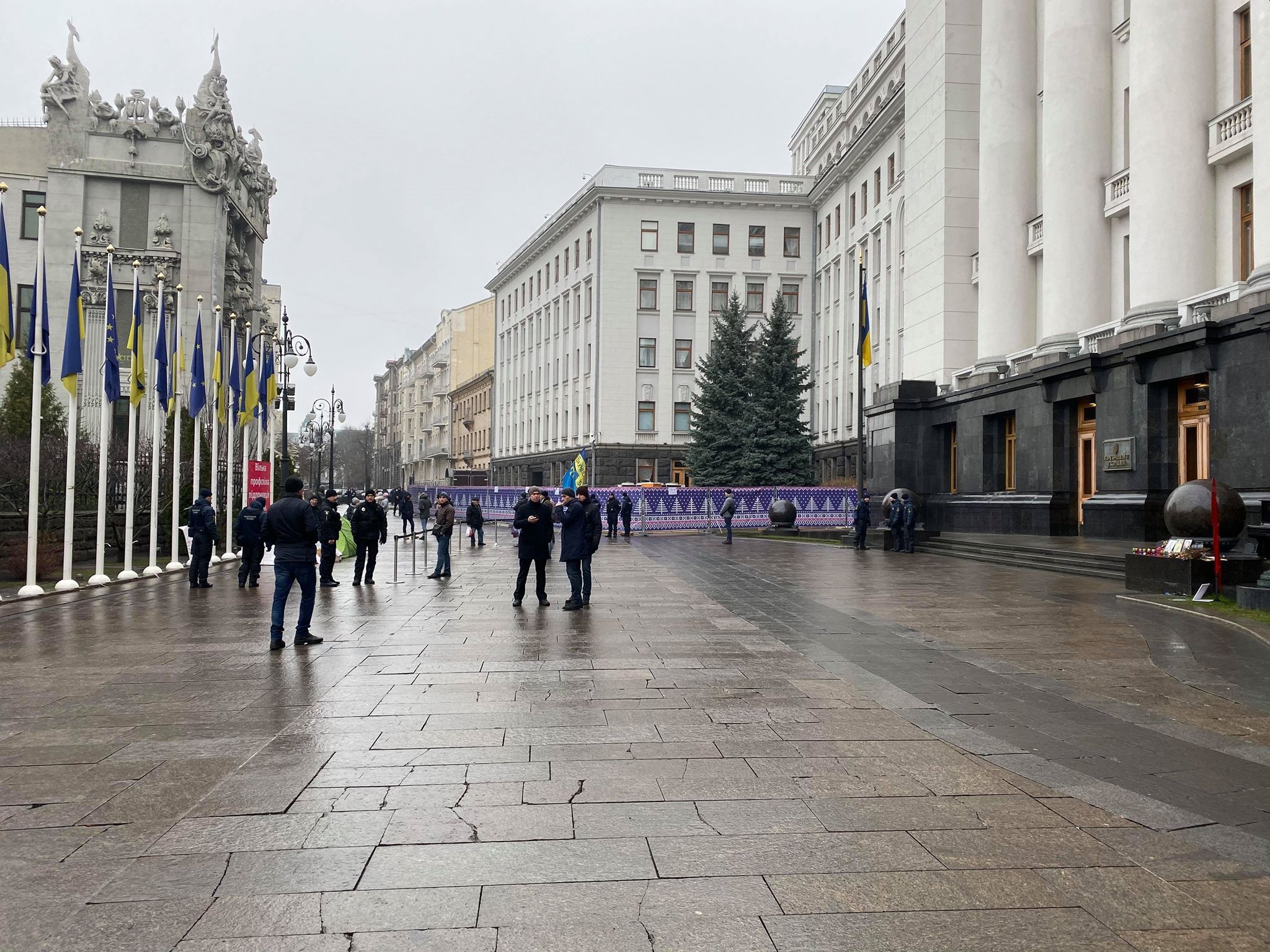 В целом площадь на Банковой остается открытой, ограждение поставили сбоку от Офиса президента.