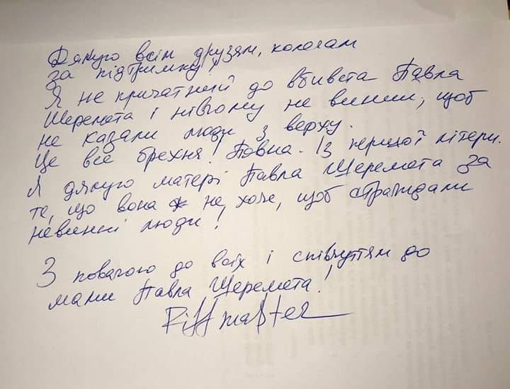 Антоненко-Riffmaster передал записку: Я не причастен к убийству Шеремета