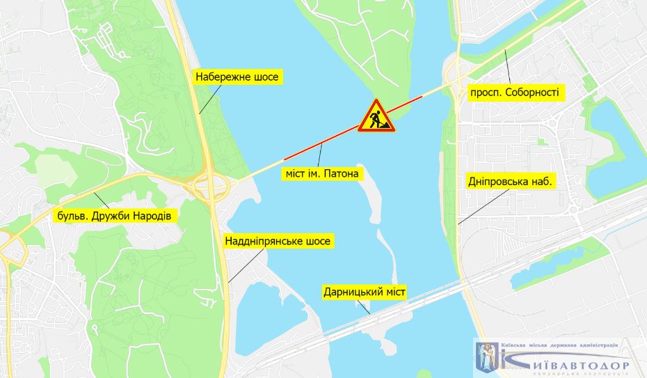 Дословно: "На мосту им. Патона обнаружено аварийное проседания покрытия. Чтобы остановить разрушение плиты автопроезда на сооружении проведут аварийно-восстановительные работы".
