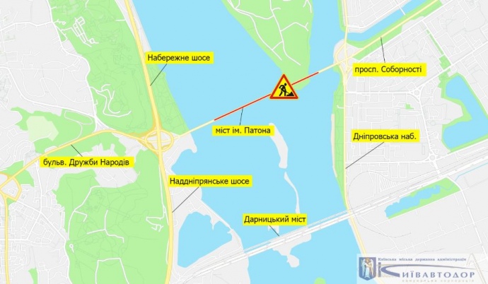 Движение на мосту имени Патона в Киеве ограничат с 21:00 вторника 17 декабря до 6:00 понедельника 23 декабря.