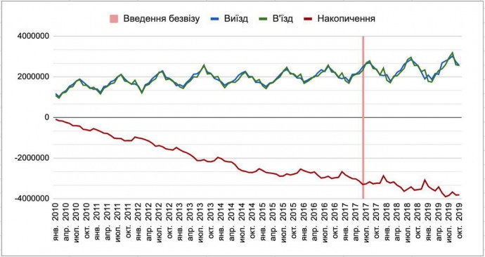 Дубилет также отметил, что безвиз существенно не повлиял на итоговые цифры миграции и сальдо. Он это объясняет тем, что произошло перераспределение - люди стали меньше ездить в Россию (по крайней мере, официально), и больше - в Европу.