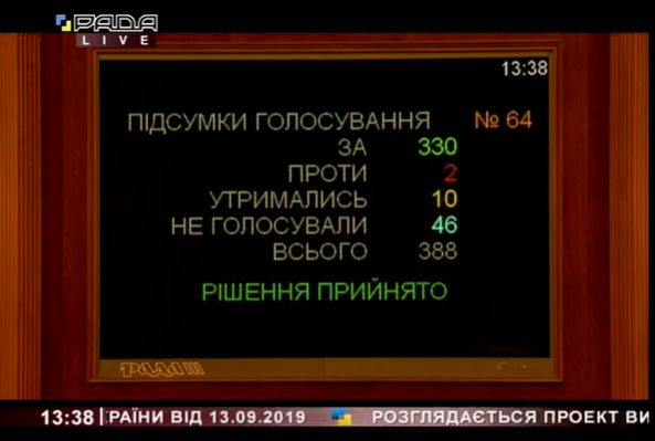 Президент Владимир Зеленский вернул его в парламент на повторное рассмотрение со своими предложениями 13 сентября 2019 года.
