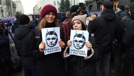 Под Офисом президента провели акцию "Аваков заеднав!" с требованием отставки министра внутренних дел Арсена Авакова.