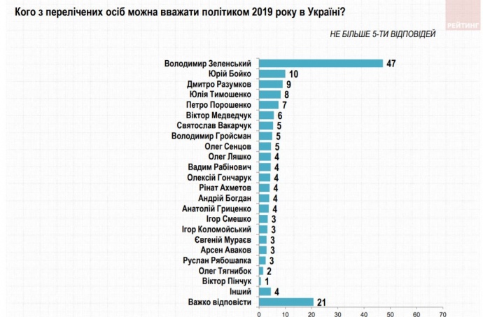 Дословно: "Большинство опрошенных (47%) считают Владимира Зеленского политиком 2019 году в Украине.