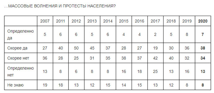 Россияне в 2020 году ждут массовых протестов и отставок в правительстве
