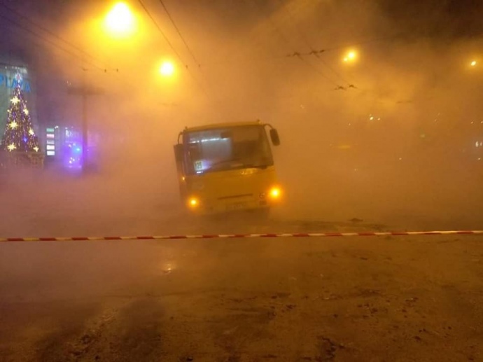 Прямая речь: "На Антоновича 174 произошел прорыв теплотрассы, образовалась яма два на два метра. Туда задними колесами попало маршрутное такси. Спасатели эвакуировали четыре человека...