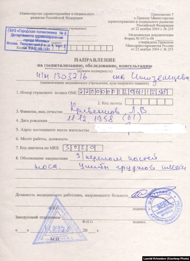 В Москве жестоко избили бывшего телеоператора Всероссийской государственной телевизионной и радиовещательной компании (ВГТРК) Леонида Кривенкова, который дал несколько интервью о политической цензуре и коррупции на российском телевидении