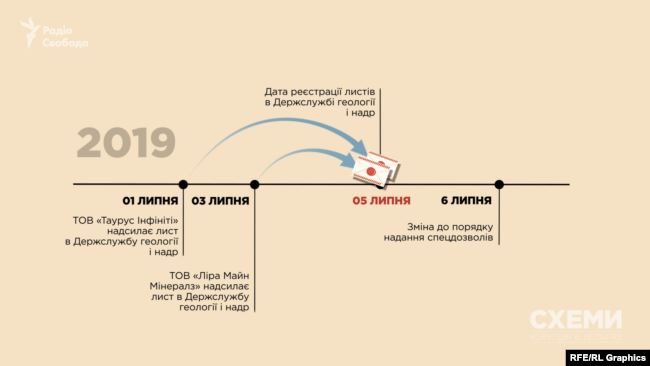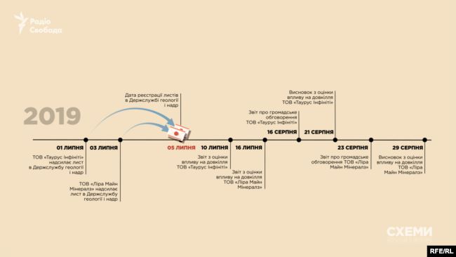 Как утверждают расследователи, 1 и 3 июля прошлого года компании подали заявления на получение специальных разрешений от Государственной службы геологии и недр. В то время предоставления разрешений регулировалось Порядком их предоставления (до вступления изменений 6.07.2019). Именно тогда "Таурус Инфинити" и "Лира Майн Минералз" нарушили процедуру подачи документов