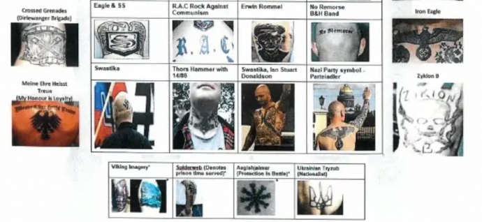В визуальном разделе пособия по выявлению знаков и символов праворадикальных групп, в секции "тату", указан герб Украины под названием "Украинский трезубец (националистический)". Изображение размещено рядом с нацистской символикой.