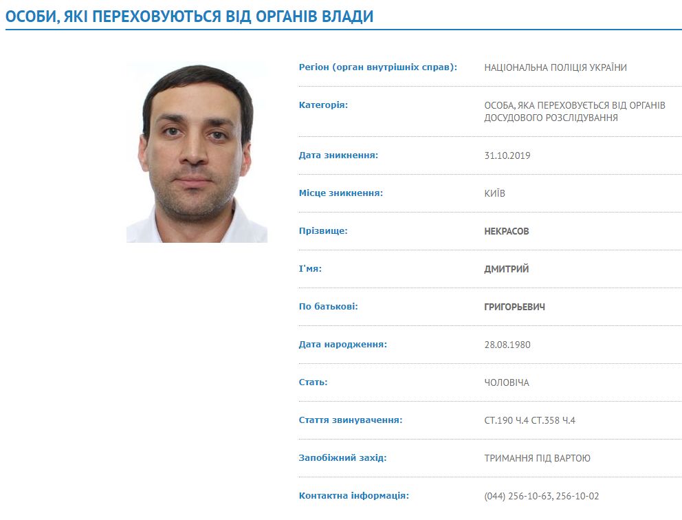 Детали: 39-летнего Некрасова-Торнера разыскивают как человека, скрывающегося от органов предварительного расследования в производстве по ч. 4 ст. 190 (мошенничество) и ч. 4 ст. 358 (использование поддельных документов) УКУ.