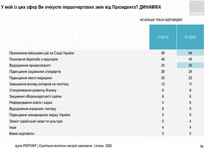 Дословно: "Прекращение военных действий на Востоке Украины остается ключевым общественным запросом к президенту (64%).