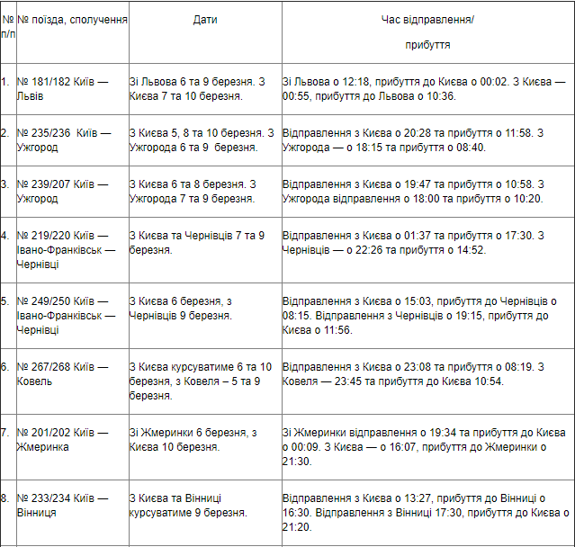 Детали: Дополнительные поезда из столицы назначены в направлениях: Львов, Ужгород, Черновцы, Ковель, Жмерика, Винница, Одесса, Кривой Рог, Харьков, Днипро.