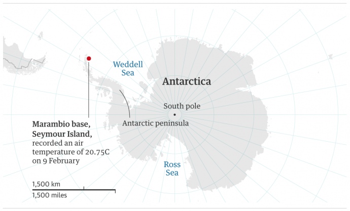 В то же время, 6 февраля аргентинская исследовательская станция на Эсперанце зафиксировала самый высокий показатель на континентальном Антарктическом полуострове – 18,3°С.