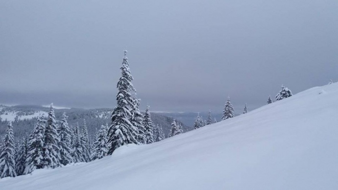 Дословно: "По данным снеголавинных станций, по состоянию на 08:00 24.02.2020 на снеголавинной станции Пожежевская: температура воздуха: -2,6°С, ветер: северный 7-9 м/сек, облачно, снег. Высота снежного покрова составляет 34-154 см, снег свежий, нестабильный, слабо закрепленный".