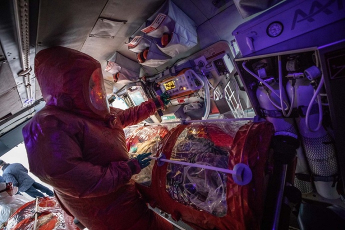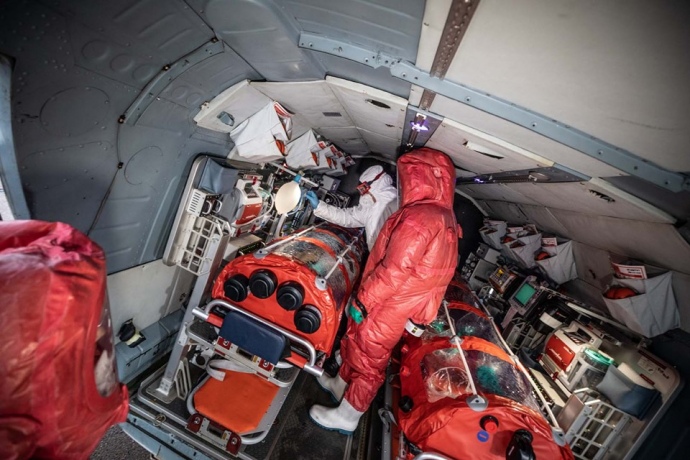 Экипаж и медперсонал вертолета – это команда медиков, прошедших специальную подготовку. Министр подчеркнул, что эти люди работали во время эпидемии "Эбола" – выполняли работы по эвакуации больных и проводили спасательные операции.