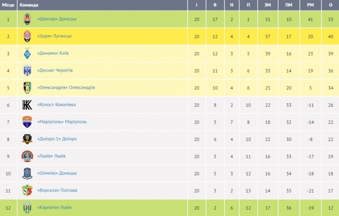 Другие матчи 20 тура завершились со следующими результатами: Днепр-1 - Динамо 1:3, Львов - Александрия 1:1, Десна - Мариуполь 4:0, Колос - Карпаты 2:1, Заря - Олимпик 1:0.