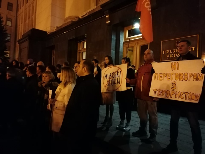 На Банковой протестуют против признания боевиков на Донбассе субъектом переговоров