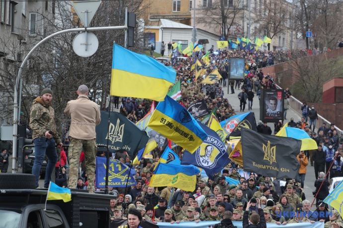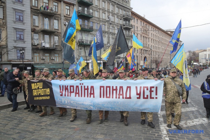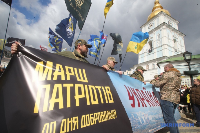 В то же время, как передает "Интерфакс-Украина", Марш патриотов по случаю Дня добровольца завершился митингом на Банковой с требованием действовать в интересах Украины.