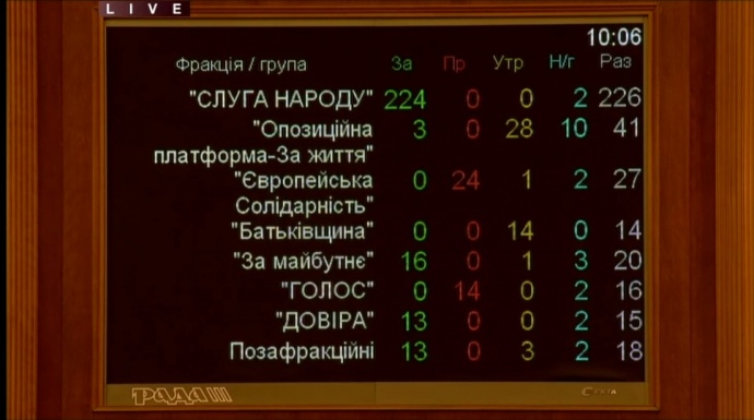Фракции "Батькивщина" и ОПЗЖ воздержались.