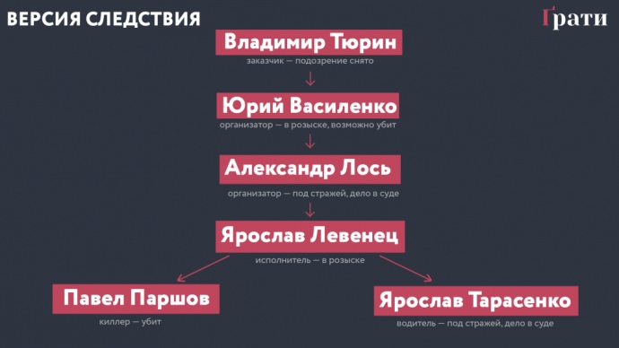 Организатором убийства прокуратура назвала криминального авторитета из Харькова Юрия Василенко. Именно ему якобы поручил дело Тюрин.