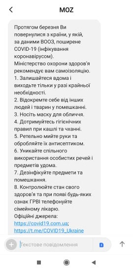 Что было раньше: 20 и 21 марта на личные номера телефонов граждан Украины, которые недавно вернулись из-за границы, поступили СМС-сообщение с текстом: