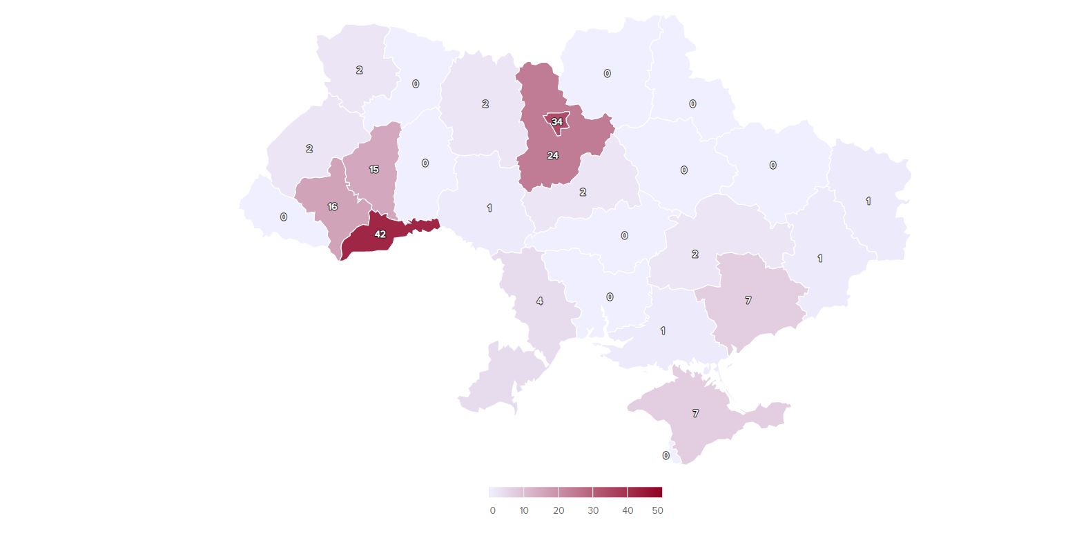 Херсонская обл. - 1 случай; - Черновицкая обл. - 42 (1 летальный) случаи;