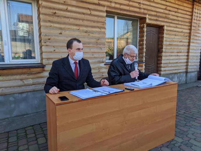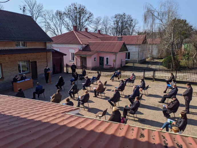 Городской голова Александр Шикер со спущенной маской зачитывал решение в микрофон, а депутаты слушали его сидя на стульчиках.