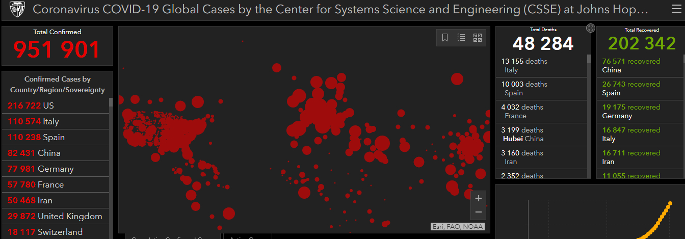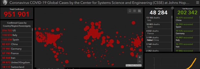 Детали: Итак количество зараженных человек неумолимо приближается к миллиону - 951 901 человек. Преодолели болезнь за это время 202 342 человека. Также во всем мире зарегистрировано 48 284 летальных случая.