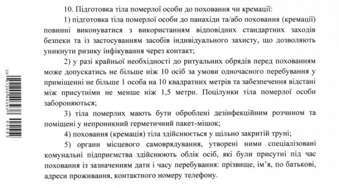 Напомним: В постановлении главного государственного санитарного врача Украины Виктора Ляшко от 27 марта прописаны рекомендации, как обращаться с телом умершего человека, у которого была коронавирусная болезнь или подозрение на COVID-19, – и для работников больниц, и для родственников умершего человека.