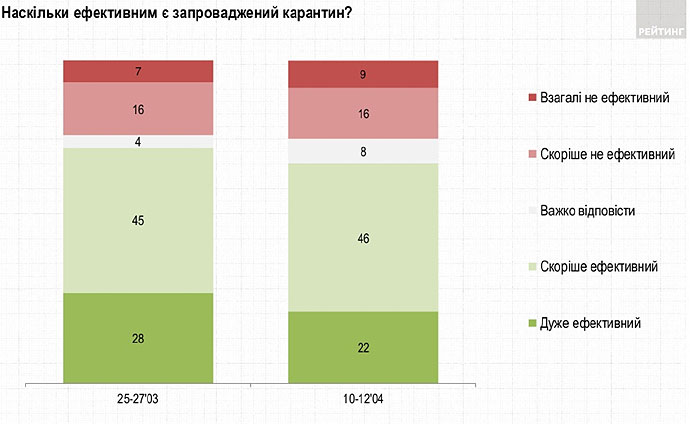 Кроме того, почти 70% считают введенный карантин эффективным, четверть – придерживаются противоположного мнения.