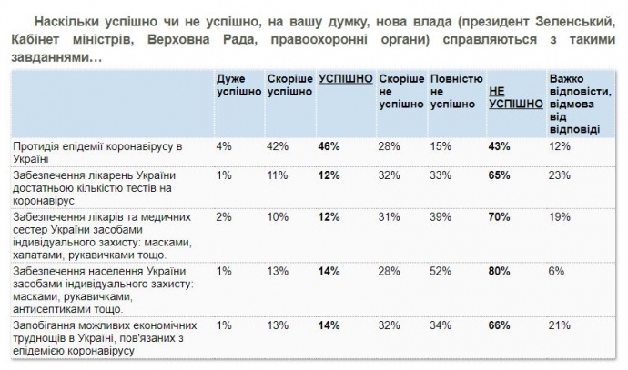 Дословно: "12% респондентов сказали, что власть успешно справилась с обеспечением медиков Украины средствами индивидуальной защиты, 70% участников исследования считают, власть не справилась с этой задачей.