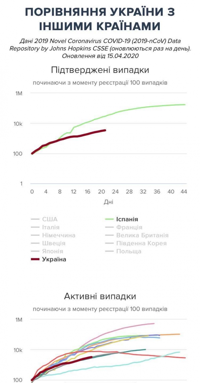 Дословно в сообщении: "Начальная динамика заражения COVID-19 в Украине похожа на динамику заражений в Испании. А эта страна сейчас на втором месте в мире по количеству тех, кто заболел. Беречь себя, будем оставаться дома - не дадим произойти трагедии".