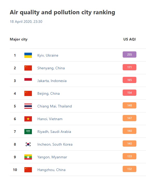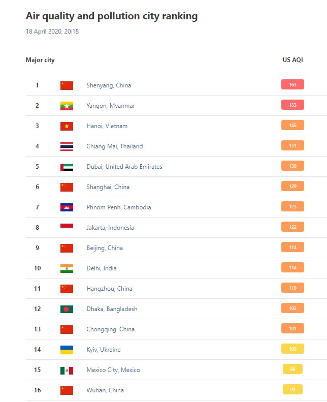 Источник: мировой рейтинг по индексу качества воздуха QIAir