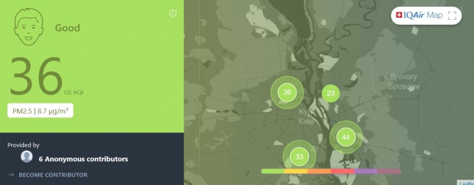 Детали: По состоянию на 20:30 Киев занимает 66 место из 97 с индексом 36, а качество его воздуха характеризуется как хорошее. Он здесь чище, чем даже в Токио, Нью-Йорке или Париже.