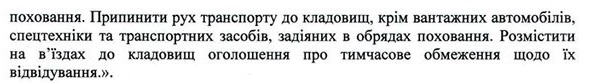 Кроме того, запрещено движение транспорта к кладбищам. Исключение для грузовых автомобилей, спецтехники и транспортных средств, задействованных в обрядах погребения.