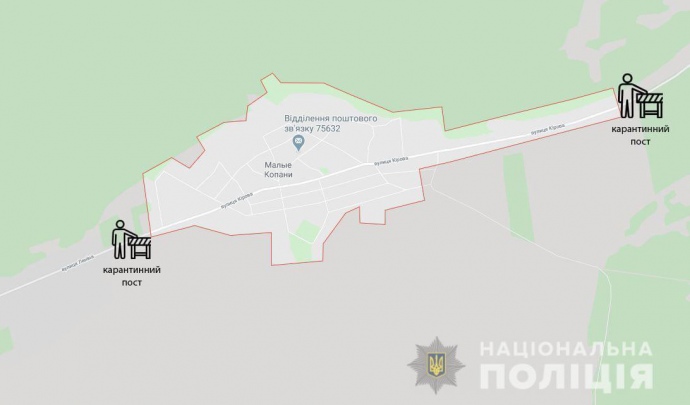 В городе Алешки будут установлены 5 карантинных блокпостов, в Малых Копанях – 2, в Левых Солонцах – 2".