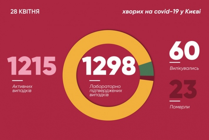 Количество киевлян с коронавирусом за минувшие сутки увеличилась на 78 человек, всего в столице уже 1298 подтвержденных случаев COVID-19.
