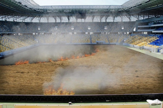 Киевское Динамо "подожгло" траву на стадионе для благородной цели