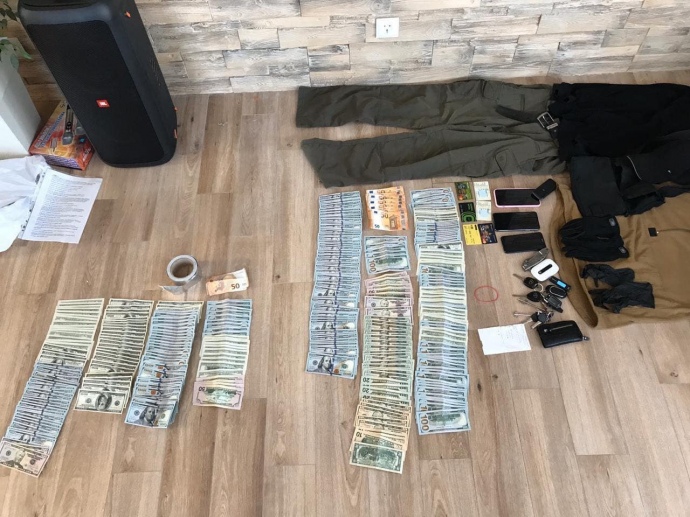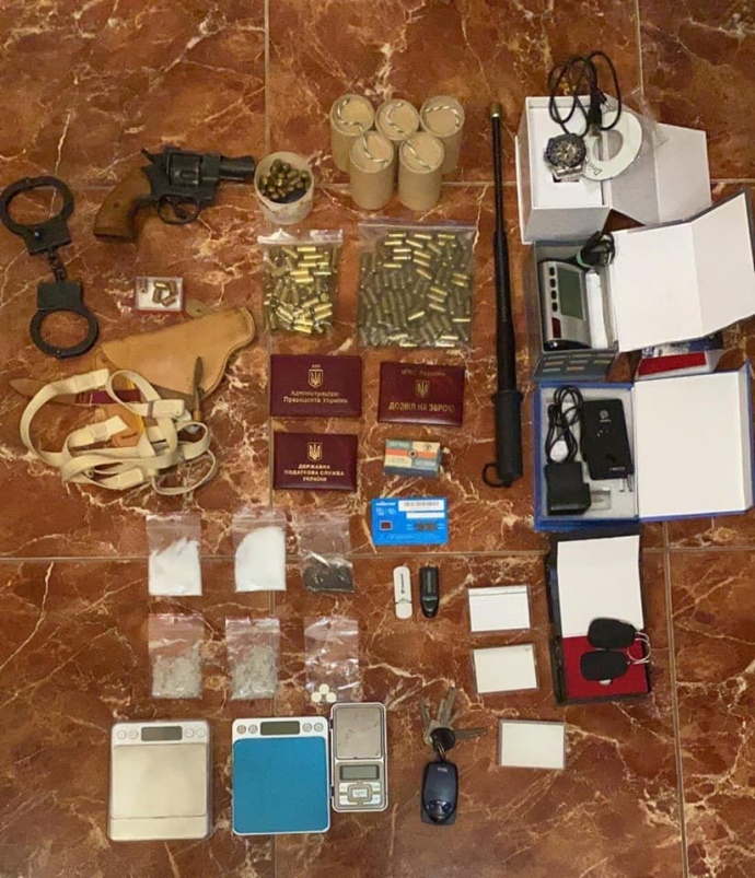 Сообщается, что во время обысков по месту жительства указанных лиц правоохранители изъяли: деньги, мобильные телефоны, номерные знаки "прикрытия", которые использовались во время наблюдения за пострадавшими, оружие и боеприпасы, черновые записи, средства обездвиживания, наркотические вещества.