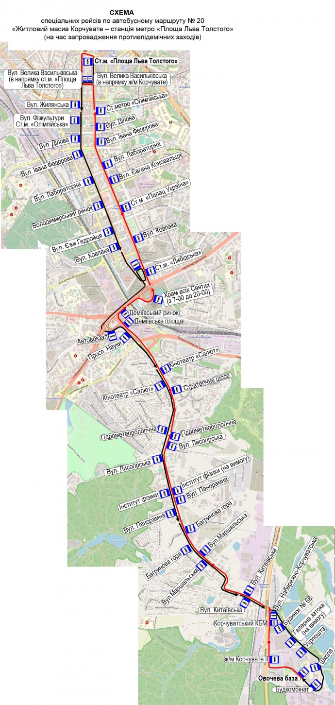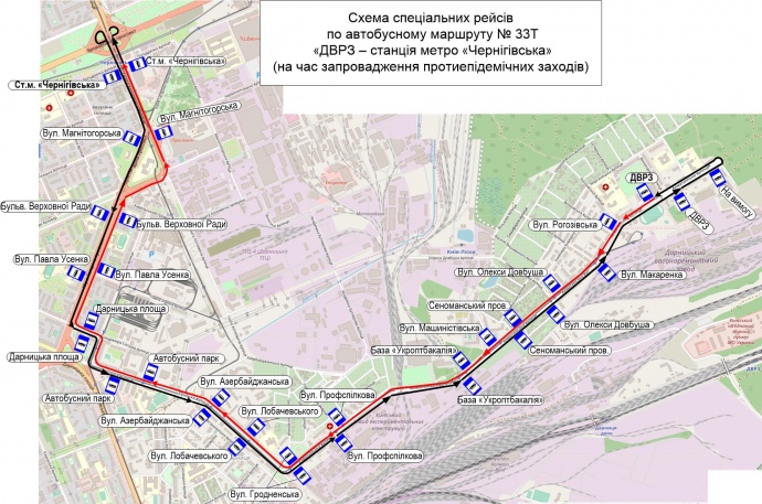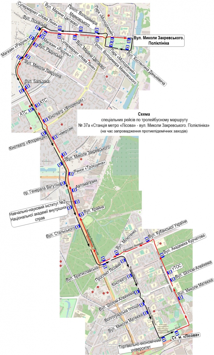 В режиме спецрейсов будет курсировать автобусный маршрут № 20 "Жилой массив Корчеватое - станция метро" Площадь Льва Толстого", автобусный маршрут № 33т "ДВРЗ - станция метро "Черниговская" и троллейбусный маршрут № 37-А "Станция метро "Лесная" - ул. Николая Закревского. Поликлиника".