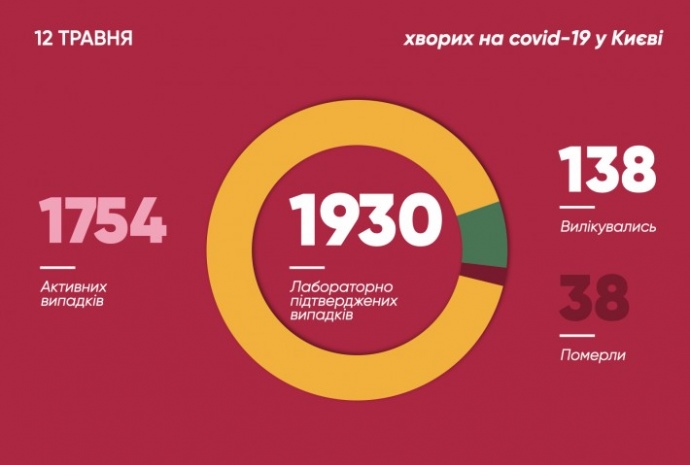 Всего на данный момент в Киеве уже 1930 подтвержденных случаев заболевания COVID-19, 38 человек умерли.
