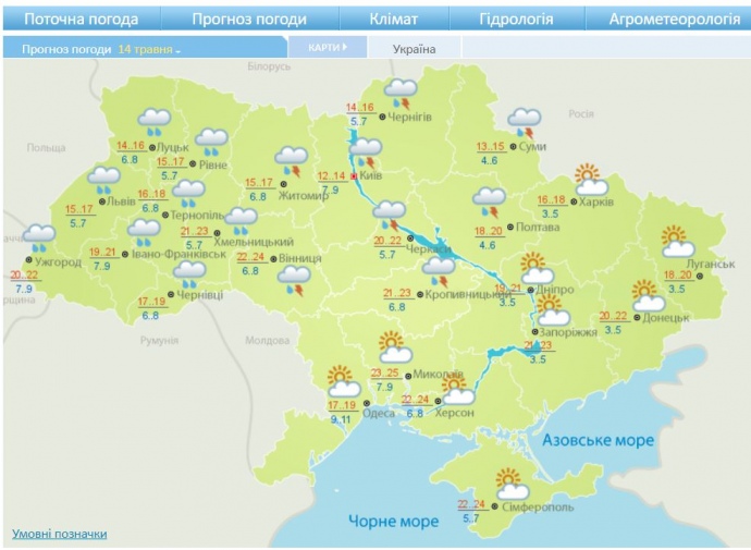 Прямая речь: "14 мая в северных, западных областях снова пройдут дожди, осадки придут в Винницкую область, а вечером в центральные области и Одесскую область. В зоне дождей возможны грозы.