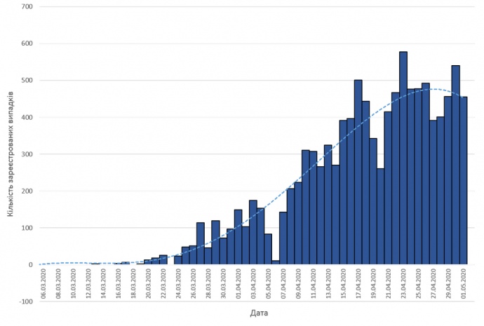 Детали: Ученые обнаружили, что для Украины на пятнадцатидневном отрезке времени (с 6 мая по 20 мая) характер развития пандемии приобретает более четкий линейный характер с уровнем "плато" - 400-550 новых инфицированных людей в день.