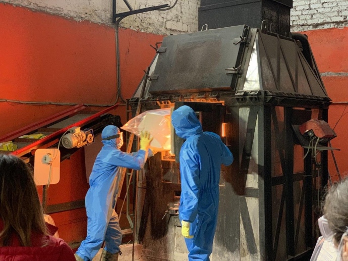 Контейнеры с использованными средствами индивидуальной защиты сжигают в Киеве в специальной печи при 750 градусах, а остатки – при температуре 1200 градусов.