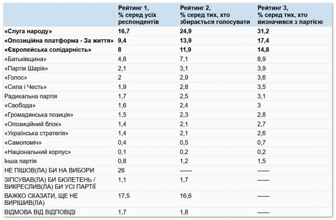 - 16,7% проголосовали бы за партию "Слуга народа",