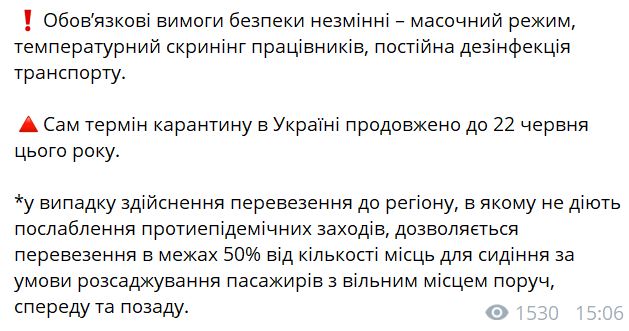Прямая речь: "Что касается международных перевозок, то с момента публикации постановления (о введении 2-го этапа ослабления карантина с 22 мая - УП) откроется возможность осуществления международных перевозок, как автобусных, так и железнодорожных, через открытые пункты пропуска, которые заработают...