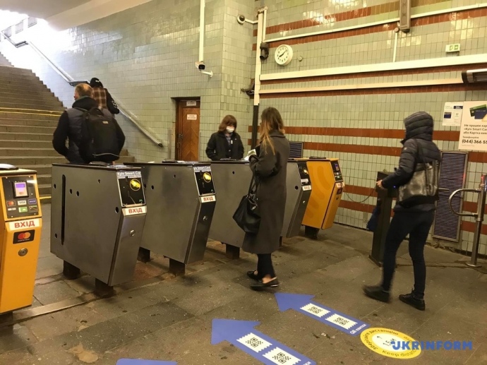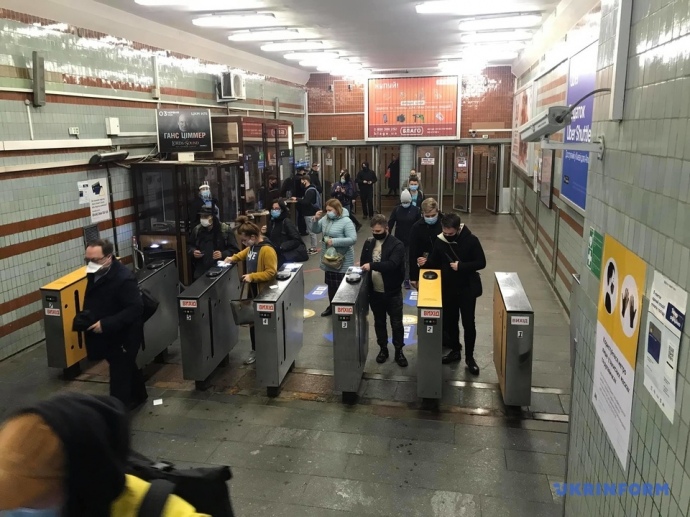 В первый день работы после ослабления карантина киевское метро в час пик полупустое.