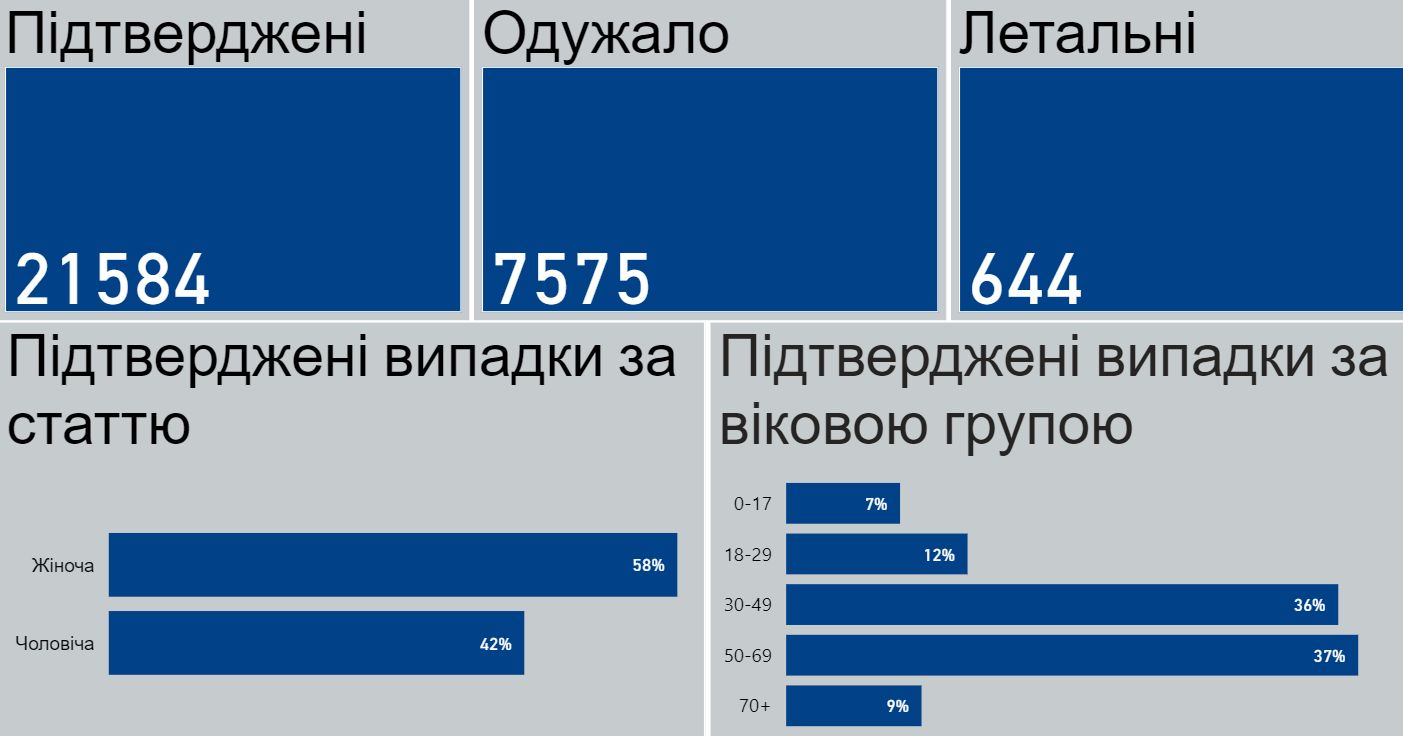 Всего за все время пандемии в Украине заболели 21 584 человека, из них 1 581 ребенок и 4 183 медработника.