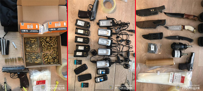 Полицейские провели 18 обысков и изъяли большое количество разнообразного оружия (гранаты, глушитель, пластид, дымовые шашки, чтобы прикрывать пути отхода), рации, а также парики, пластиковые стяжки, кастеты, ломы, мобильные телефоны, наркотики, деньги, семь машин и другие вещи.